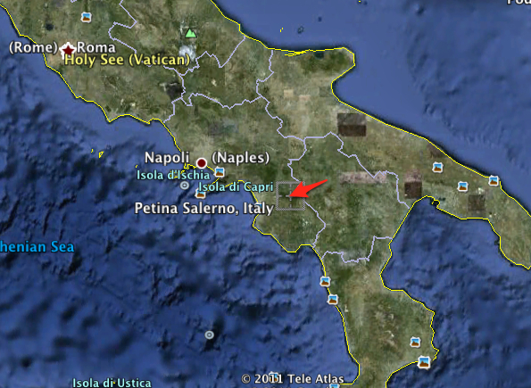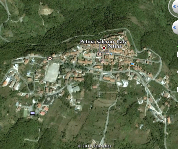 Petina is a isolated village on top of a plateau, which extends in a 13.51 mil radius.  The present mayor is Giovanni Zito.  Patina is 177 mils South0Est of Rome. Naples is 62 miles away and is the closest major city.  The nearby villages are Caggiano (6 miles), Auletta (4 Miles) and Salvitelle (6 Miles).