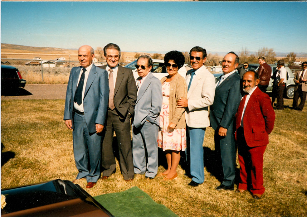 This photo was taken at Leonard funeral in Randolph, Rich, Utah, where he is buried. The remaining siblings are standing in birth order. Bill, James, Joe, Sis, Tete, George and Thomas.